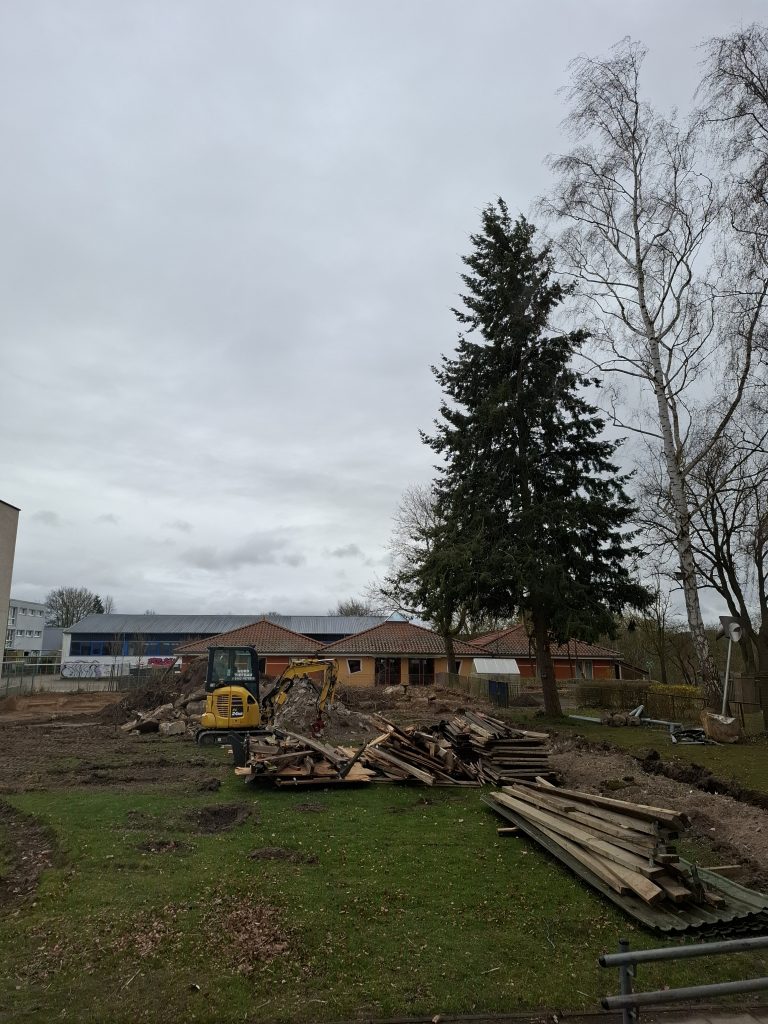 #5 Bautagebuch Veröffentlicht am 25. März 202627. März 2026 von Admin Den vorderen Schulhof umgibt ein abgesperrter Weg für Baufahrzeuge. Der hintere Schulhof wird weiter beräumt.