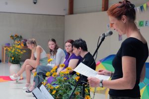 Die Feier wurde musikalisch untermalt von unserem Schulchor (unter der Leitung von Herrn Lehner) und von der Klasse Drews, die ein tolles Lied einstudiert hat.